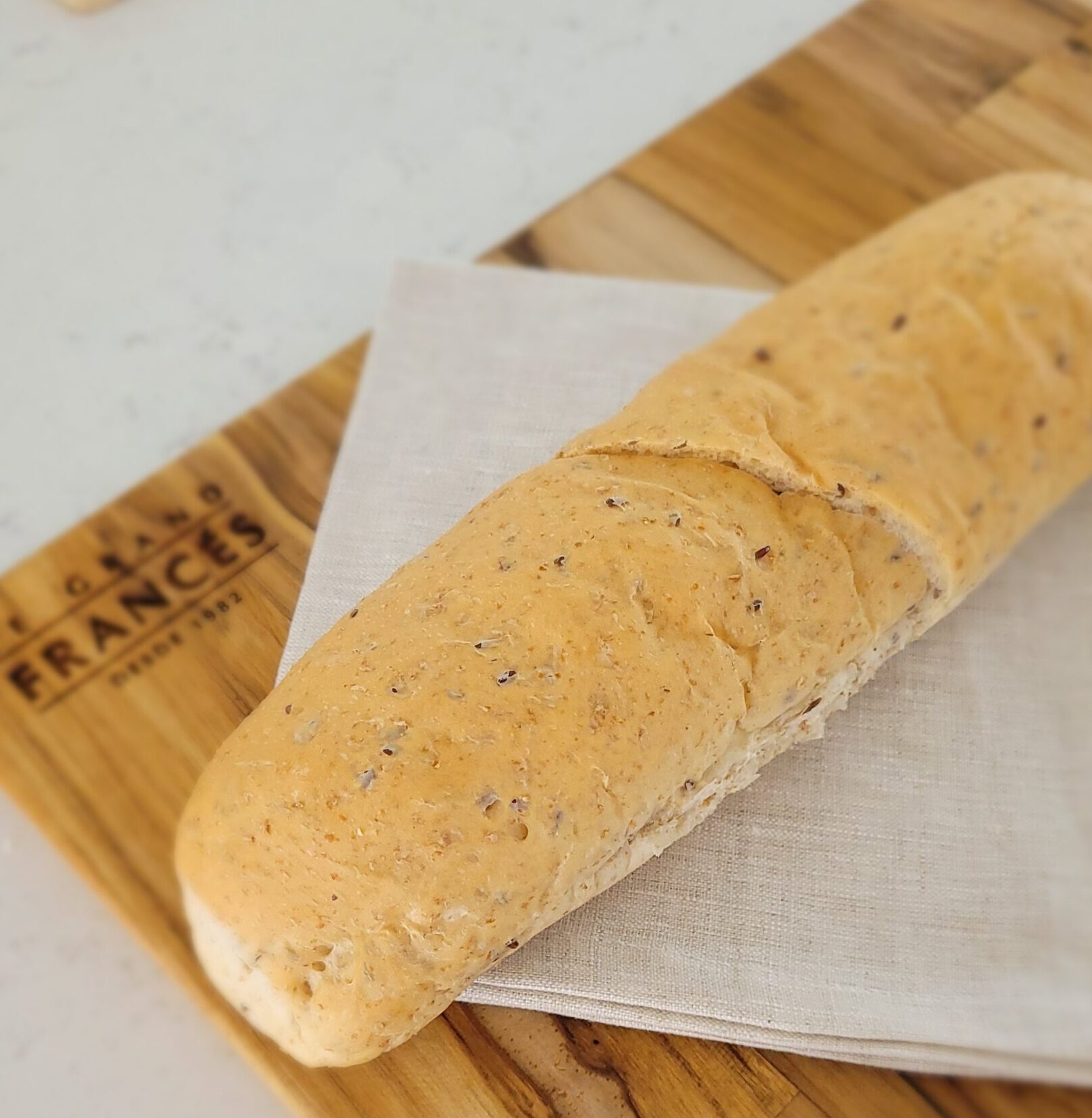 Pan de corteza semi-crocante con semillas de linaza (22 cm de largo).